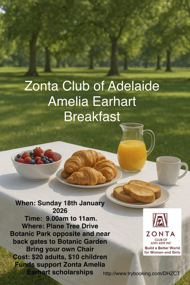 Join members, family and friends for a relaxed morning get together. Funds will be raised for the Zonta International Amelia Eaarhart Fellowship to support women studying in the aerospace industry....